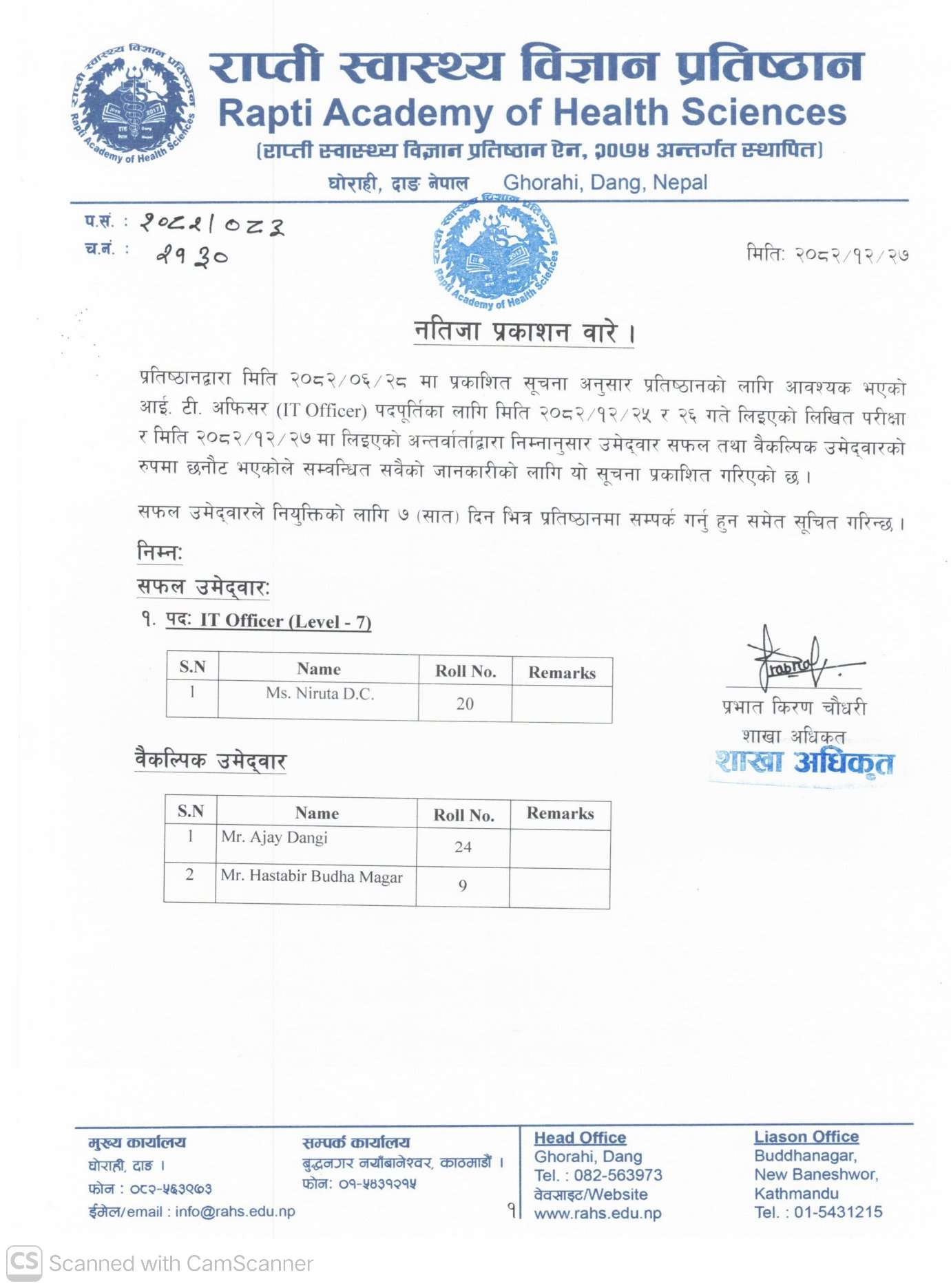 IT Officer (तह-७) पदको नतिजा प्रकाशन सम्बन्धी सूचना