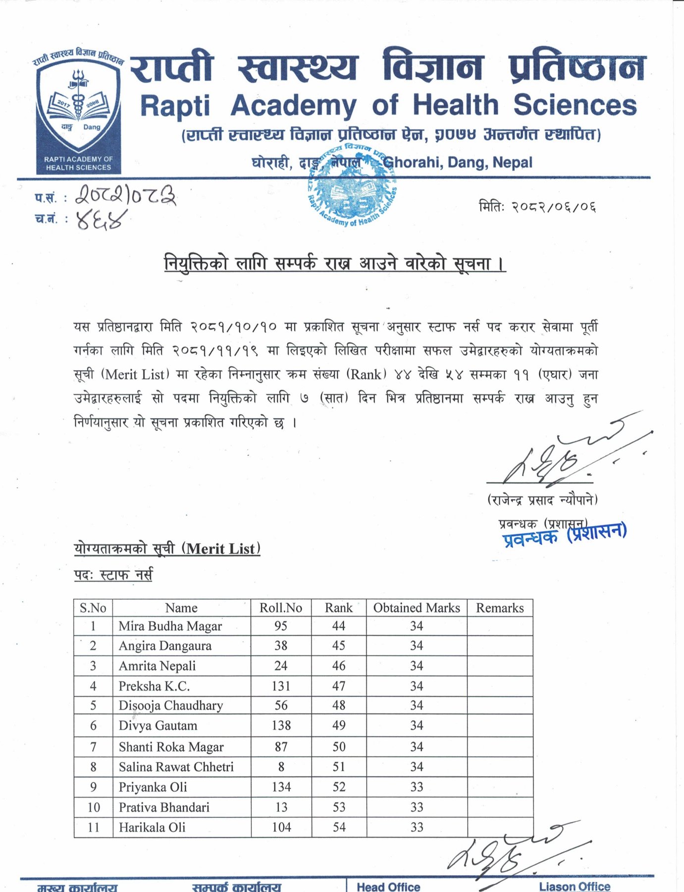 स्टाफ नर्स पदको नतिजा प्रकाशन सम्बन्धी सूचना Published on : Sep 22, 2025 Click Here to Download https://rahs.edu.np